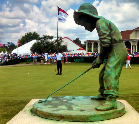 No more sleeps. No more delays, we are about to board a big bird that will take us to Dallas and then an internal flight to Raleigh Durham. We arrive in Raleigh Durham at 10:30pm and then have a 90 minute transfer to the Pinehurst Resort. You may recognise this little guy – Putter Boy. Like the Claret Jug one of the most iconic golfing images. The fact that this icon is here, that Pinehurst is one of the Top 10 public courses in the world, Top 3 public courses in the US I think and I am going to have the opportunity to play it! It has been one of my dreams for about 25 years. I cannot wait….