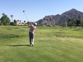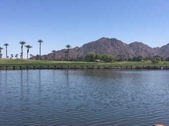Palm Springs is a development in a desert, arid, rocky where there is no planted grass which makes for a dramatic backdrop and some fantastic views. They do golf very well here, arrive and they take your bags, load them on the carts – you go and register, do some shopping then go downstairs and everything is ready waiting for you.